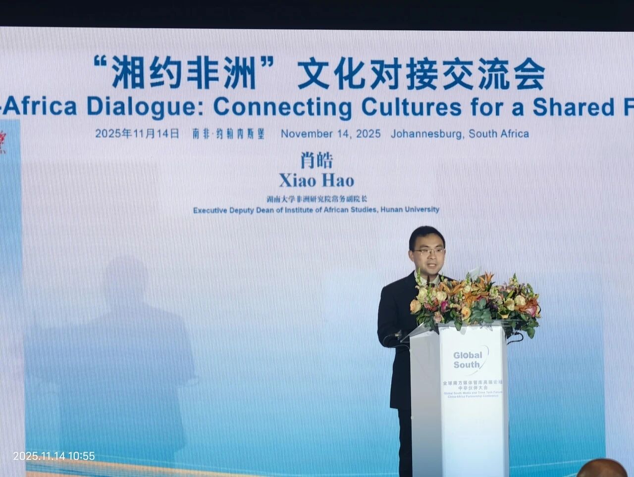 11月13日至14日,新华社举办的“全球南方”媒体智库论坛中非伙伴大会在南非约翰内斯堡顺利召开。来自中非两国的文化领域官员、主流媒体智库代表、文化企业负责人及智库专家携手共话中非共同发展与全球南方现代化新机遇。新华社总编辑吕岩松、中国驻南非大使吴鹏、南非独立传媒集团执行主席瑟维、非盟新闻司司长莱斯利·里彻以及湖南省商务厅厅长沈裕谋等嘉宾出席。湖南大学非洲研究院常务副院长肖皓教授受邀参加会议。